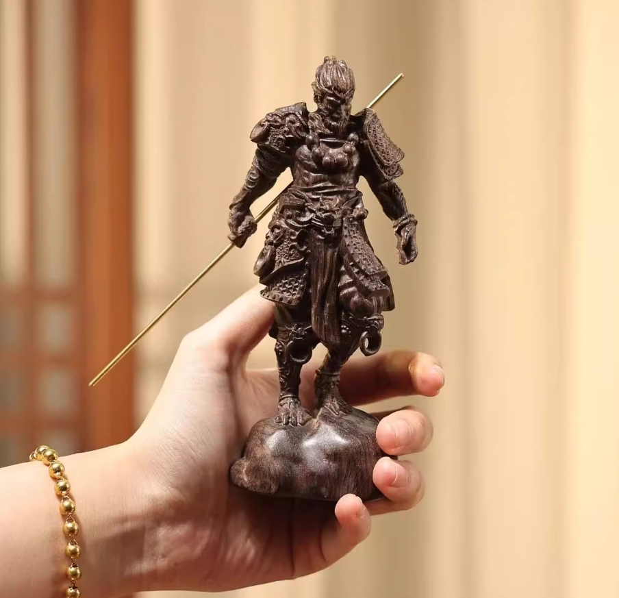 Every detail of the carving—from the Monkey King’s fierce yet wise gaze to the intricate folds of his mythic robe—has been hand – crafted with reverence, ensuring that each statue holds a unique piece of the carver’s devotion and the wood’s inherent magic. This isn’t just a decorative item; it’s a timeless amulet, a fusion of Chinese myth and natural wonder, ready to walk with you through life’s journeys, shielding you from harm, fueling your ambitions, and leading you toward a future filled with luck, protection, and success.