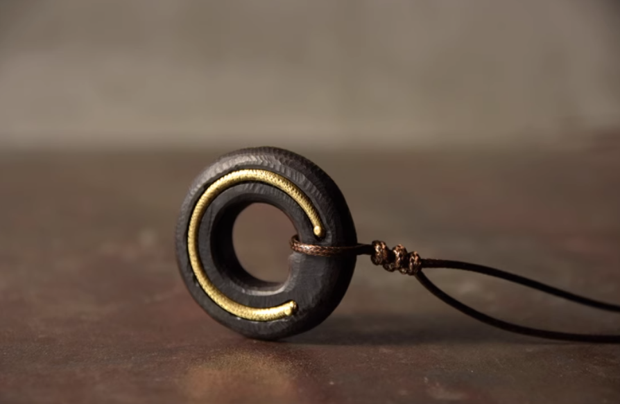 Thunderstruck wood is nature’s urban artifact—born from a lightning strike, it holds the storm’s raw energy. Paired with hand – set brass accents, this circular pendant blends raw natural power with retro streetwear cool. It’s not just a necklace; it’s a statement piece for those who live at the intersection of nature and urban style.