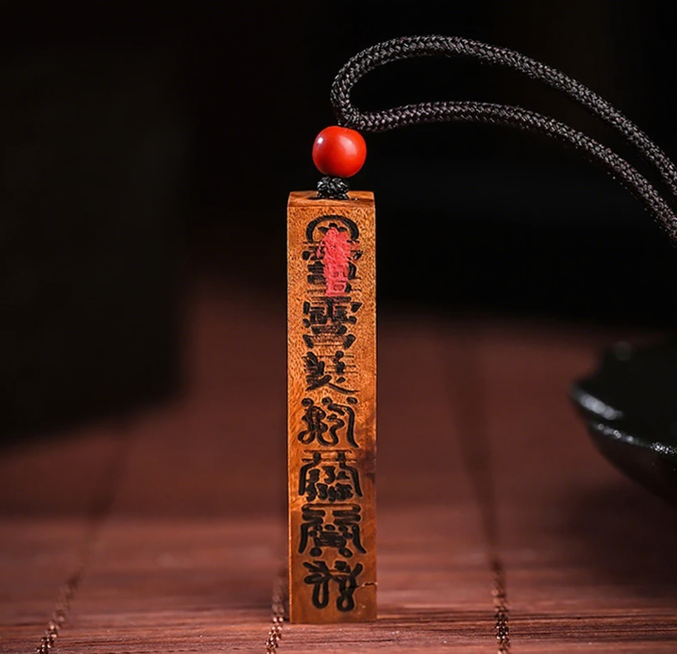 Rooted in age – old legend, thunderstruck wood is deemed a vessel of celestial energy, forged by the raw might of lightning. This pendant, with its intricate inscriptions carved into such sacred thunderstruck wood, is a bearer of good fortune and protection.