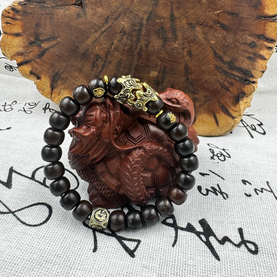 Material: Thunderstruck wood beads, Pixiu & auspicious symbol inlays