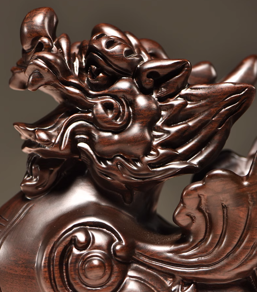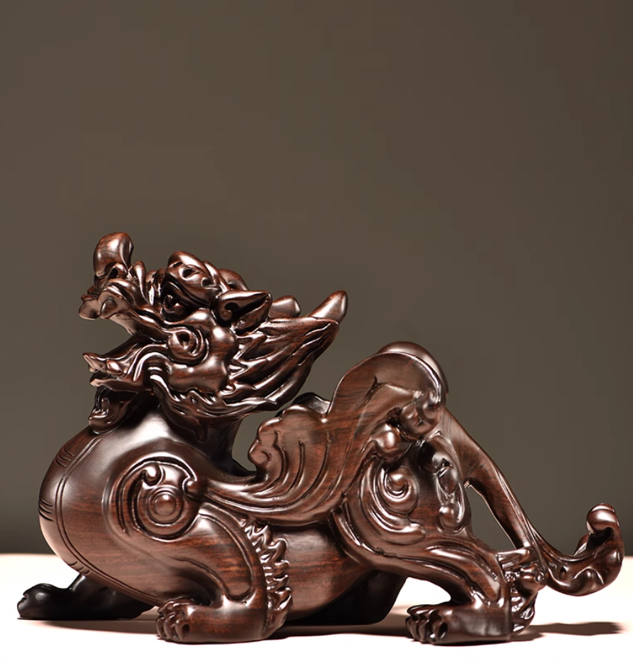 Our Hand – carved Thunder – struck Ebony Pixiu Statues perfectly combine this ancient Chinese cultural symbol with the unique energy of thunder – struck wood. Thunder – struck ebony, formed when ebony trees are struck by lightning, is endowed with extraordinary auspicious energy by nature. The intense power of lightning infuses the wood with a special vitality, making it a rare and precious material.