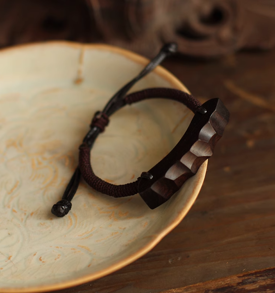 This bracelet is a labor of love and skill, handcrafted from thunderstruck ebony wood. Our master artisans, with years of experience and a deep respect for the material, have painstakingly transformed the raw thunderstruck ebony into a wearable work of art.