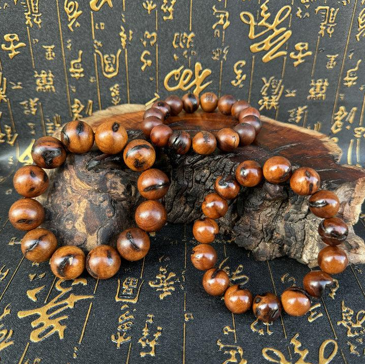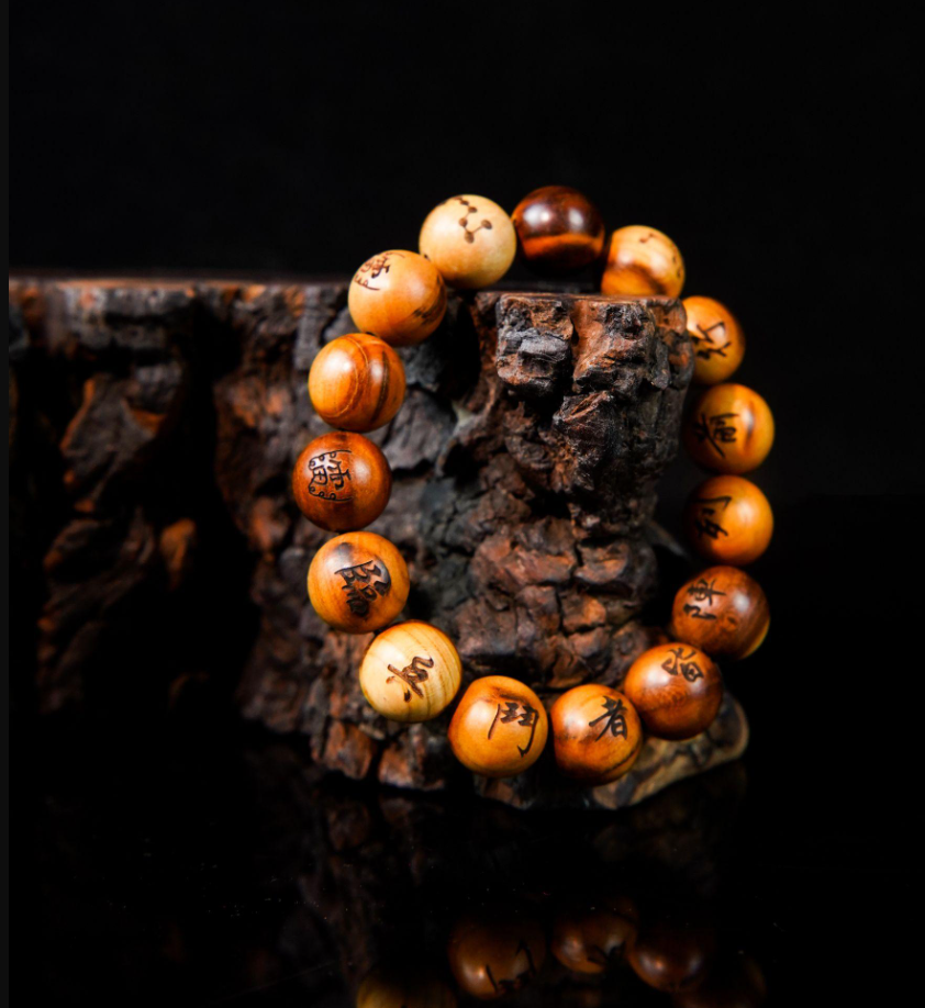 Myth speaks of thunderstruck wood as a gift from the heavens, where lightning’s blaze etches wisdom into timber. This bracelet features thunderstruck wood beads, each carved with ancient characters that carry tales of courage and fortune. As you hold them, feel the legacy of celestial power, a blend of nature’s might and time-honored lore, guiding you with every wear.