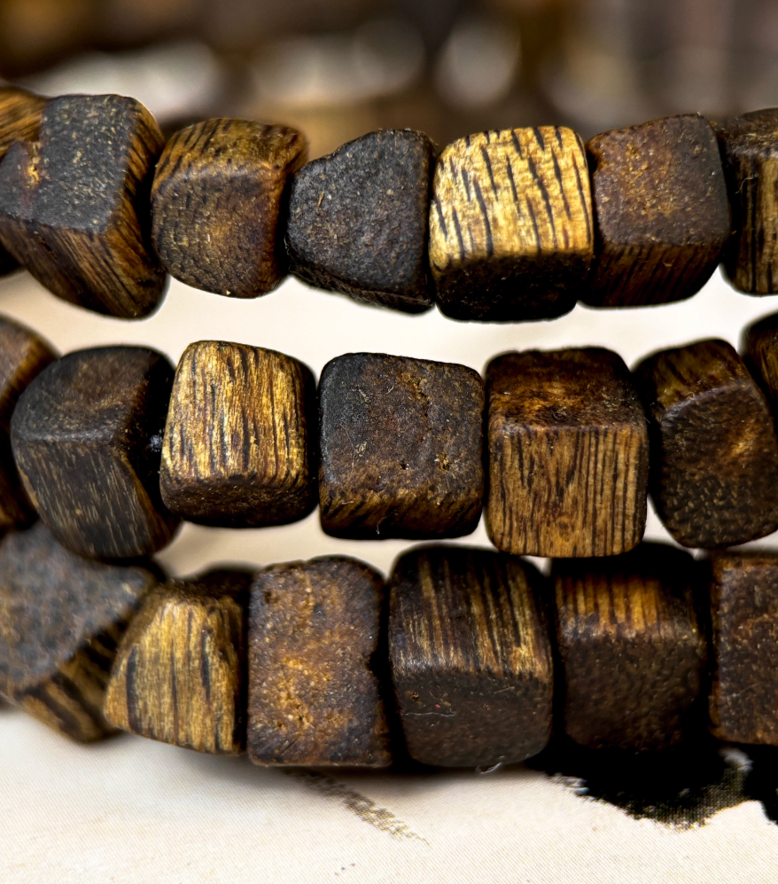 The aesthetic of this thunderstruck wood bracelet is a harmonious blend of rustic charm and natural elegance. The unique patterns of the thunderstruck wood beads create a visual tapestry that is both captivating and grounding. The warm, earthy tones of the wood make it a versatile accessory that can complement a wide range of styles.